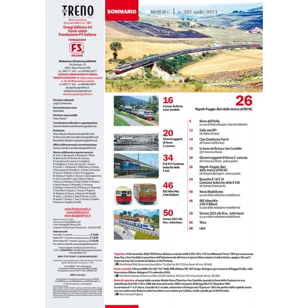 Copertina: il 26 novembre 2022 l’ICN Roma–Bolzano, trainato dalle E 402 135 e 174, ha effettuato l’Invio 1847 per conoscenza linea fino a San Candido in previsione dell’attestamento del treno in quest’ultima stazione (vedi articolo a pagina 16); qui il treno è presso San Lorenzo di Sebato, in Val Pusteria.